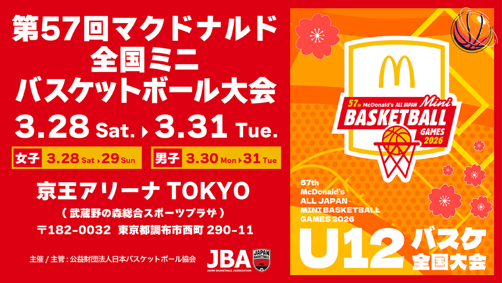 「第57回マクドナルド全国ミニバスケットボール大会」大会概要及び組み合わせ発表 ~ 3月28日(土)~31日(火)の期間、京王アリーナTOKYO(東京都調布市)で開催 ~